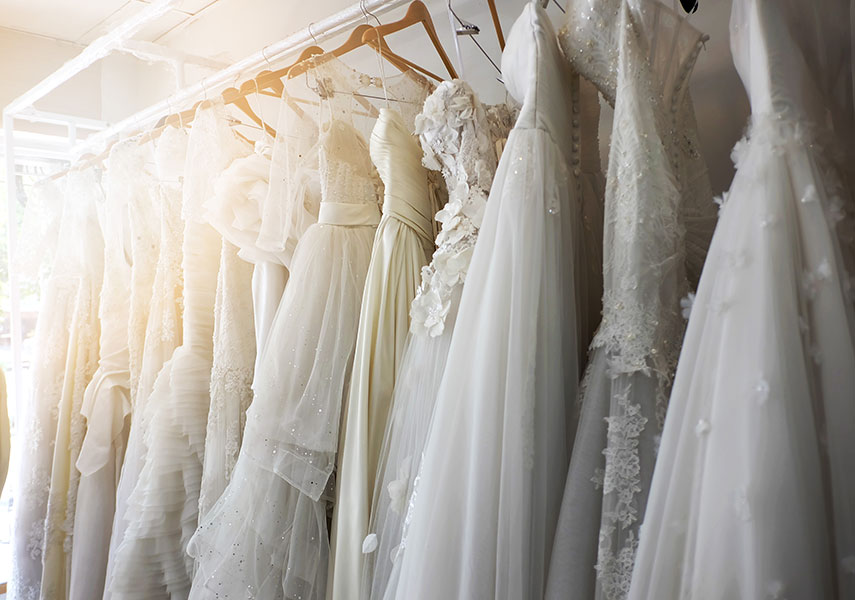 アウトドアウェディングでは、ドレスもカジュアルに引きずらない丈のものを選ぶとよいでしょう。ナチュラルな雰囲気似合うエンパイアや、スリムで動きやすいスレンダーラインなどがおすすめです。